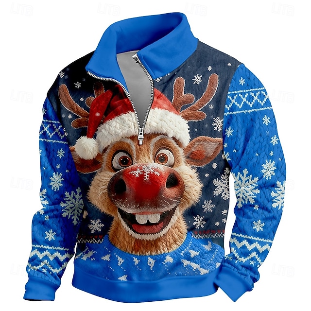 Weihnachten Herren Weihnachtsmann Rentier Schneeflocke Hemd Knopfhemd Kurzarm Lustig Outdoor Ferien Sommer Frühling Umlegekragen 3D-Druck Hemden mit Kragen Blau