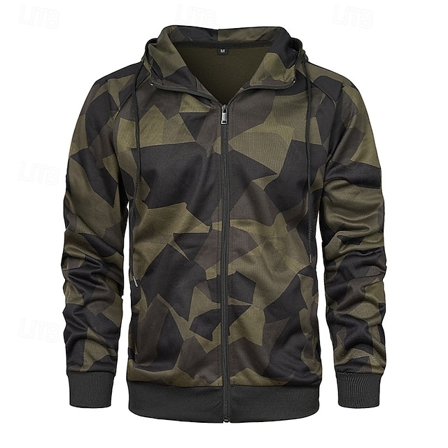 Herren Kapuzensweatshirt Vollreißverschluss-Kapuzensweatshirt Armeegrün Blau Khaki Mit Kapuze Einfach Tarnung Tasche Sport & Outdoor Lässig Täglich Streetwear Cool Sportbekleidung Frühling & Herbst #14401185