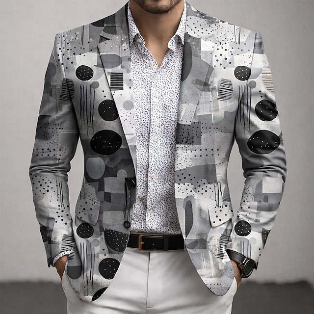 Herren Geometrisch Blazerjacke Mantel Mode Bequem Atmungsaktiv Künstlerisch Lässig Lässig Täglich Party-Abendmode 3D-Druck Knöpfe Mehrere Taschen Herbst Winter Frühling Flacher Kragen Langarm Blau #14688144