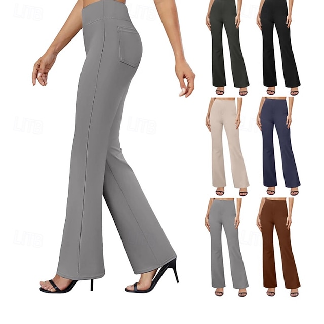 Damen Weite Hosenbeine Chinos Urlaub Streetwear Lässig Volle Länge Mittlere Taillenlinie Einfach Elastischer Bund Bequem Dehnbar Täglich Outdoor Urlaub Dunkelbraun Dunkelgrau Aprikose Schwarz #14734901
