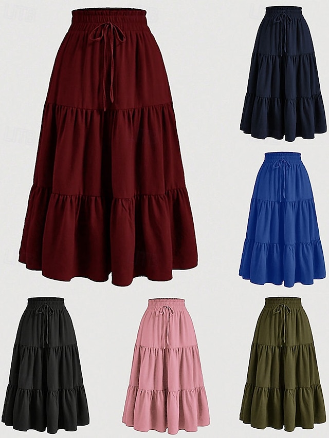 Damen Elegant Bohemien Lässig Maxi Mittlere Hüfthöhe Röcke Einfach Gerafft Kordelzug Geschichtet Mikroelastisch Täglich Straße Wein Marineblau Schwarz Rosa Sommer #14935978