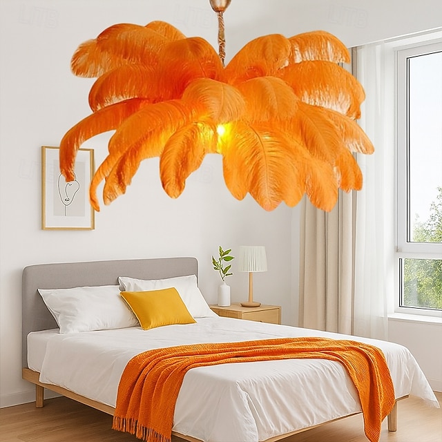 ?Nordische Straußenfederlampe ? Diese Lampe vereint modernes Design mit luxuriösen Materialien und ist ein atemberaubender Blickfang für Ihr Wohnzimmer oder Schlafzimmer.