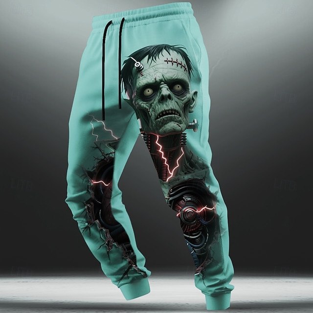 Herren Gothic-Horror Zombies Jogginghose Hose Mittlere Taille Kordelzug Elastischer Bund Dunkler Gothic-Stil Outdoor Ferien Sportliche Jogginghose mit Taschen Frühling Herbst 3D-Druck Blau Orange Grün #15461298