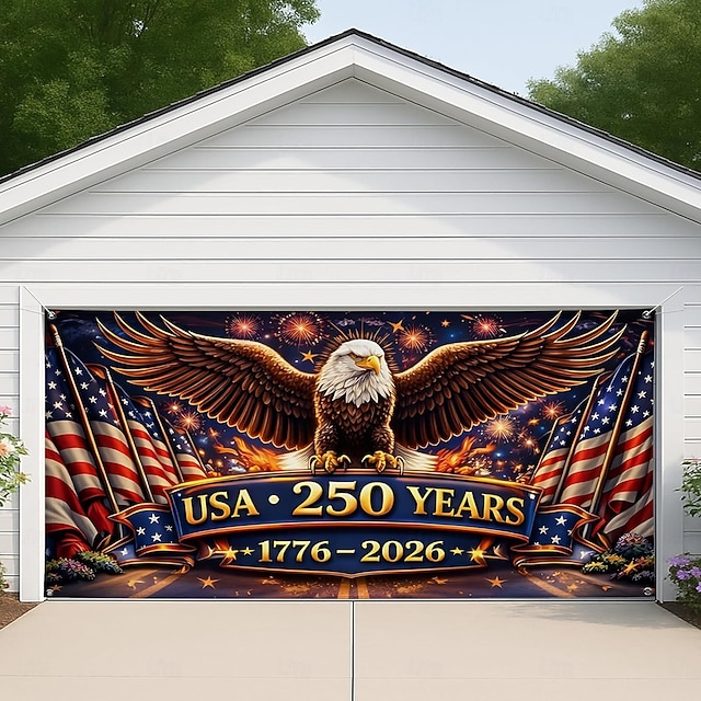 Garagentorabdeckung zum 250. Jahrestag der USA, patriotische Dekoration mit Adler und Flagge, große Garagentordekoration, Dekoration für Partys zum Unabhängigkeitstag im Innen- und Außenbereich#15649132