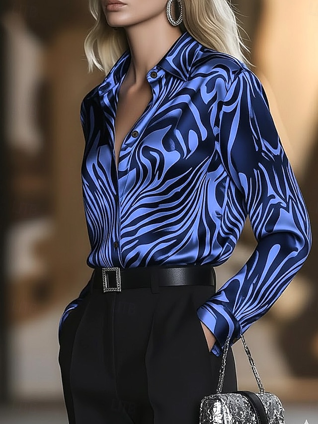 Damen Hemd Grafik Geometrisch Vintage Stilvoll Modern Langarm Hemdkragen Normale Oberteile Täglich Ferien Blau Erröten Sie Rosa Rosa Hellgrau Sommer Frühling#15680310