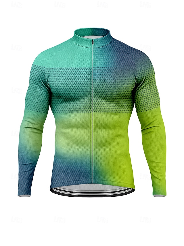 Herren Oberteile Radtrikot Ombre Grafik Farbverläufe Langarm Fahhrad Trikot Oberteil mit 3 Gesäßtaschen Sonne Sonnenschutz Schnelltrocknend Reflektierende Streifen Sport Purpur Orange Grün Bekleidung #15682000