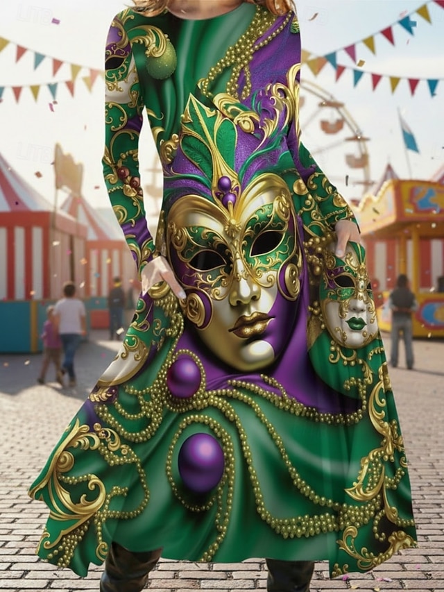 Damen Midikleid Freizeitkleid Schwingkleid Elegant Mode Täglich Outdoor Wochenende Normale Passform Blumen Grafik Langarm Rundhalsausschnitt Blau Gelb Purpur Grün Frühling Herbst Winter #16358580