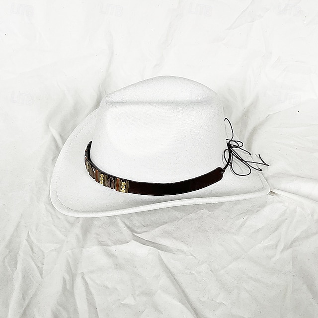 Metallgürtel Western Cowboyhut Herren Herren Damen Jazz Cowboyhut mit Leder breiter Krempe Glockenhut Kirche Sombrero Cowgirl#16601632