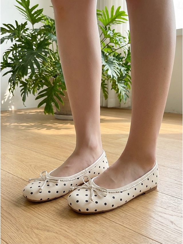 Schwarze Damen-Ballerinas mit Polka-Dots – klassische, runde Slipper zum Hineinschlüpfen mit Schleifenverzierung für Büro und Alltag &Freizeitkleidung#16922991
