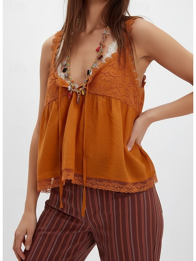 Damen Bluse Spitzentops Camisole-Tanktop Patchwork Spitzenbesatz Einfach Täglich Stilvoll Modern Ärmellos U-Ausschnitt Normale Oberteile Täglich Ferien Ausgehen Schwarz Weiß Gelb Rosa Rote Sommer #17326336