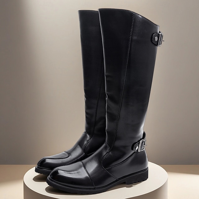 Hohe schwarze Reitstiefel für Herren – kniehohe Reitstiefel aus echtem Kunstleder mit seitlicher Schnalle zum Reiten, für Kostüme und formelle Anlässe#17354113