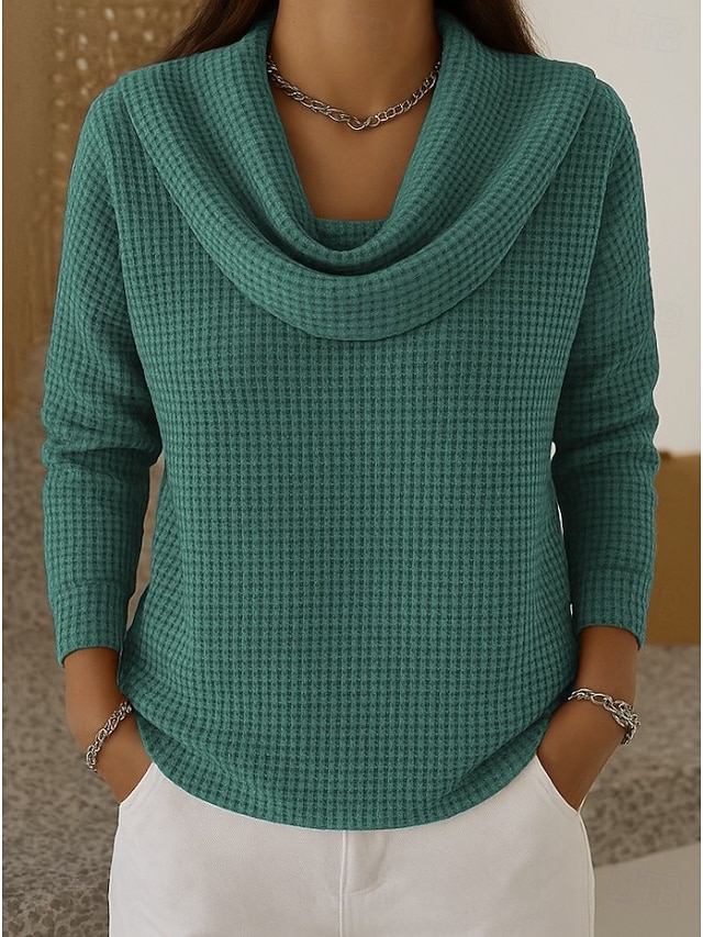 Damen Pullover Sweatshirt Patchwork Druck Grafik Einfach Elegant Warm Mode Langarm Revers Normale Oberteile Heim Arbeit Straße Blau Saphir Rosa Dunkelgrün Violett Herbst Winter