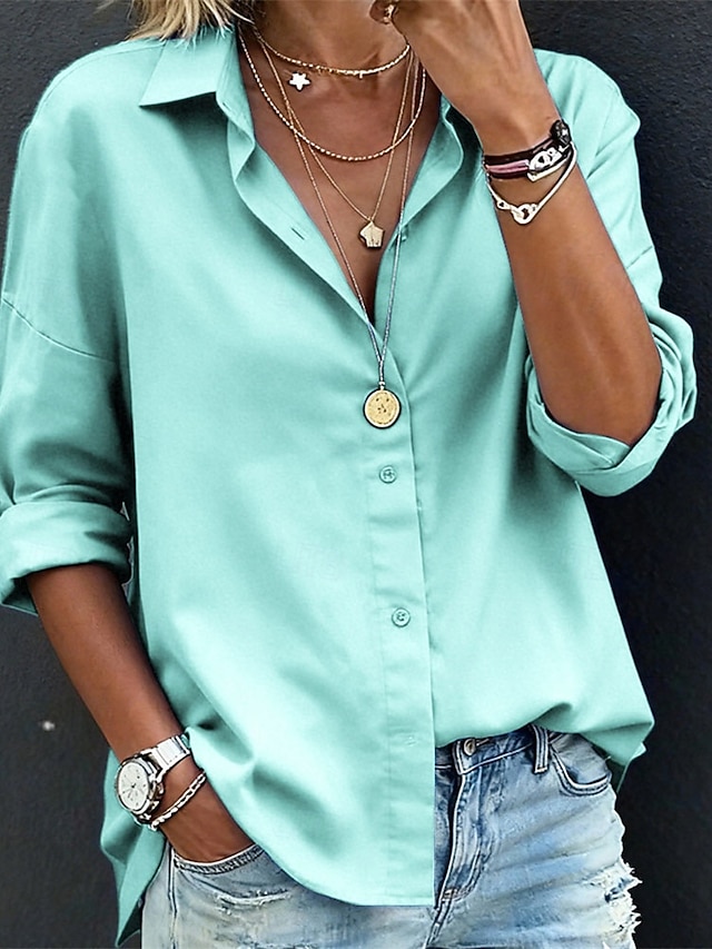 Damen Bluse Elegante Oberteile Gerafft Patchwork Knöpfe Einfarbig Einfach Elegant Vintage Damen Langarm Hemdkragen Normale Oberteile Täglich Arbeit Ferien Blau Hellgrün Grün Rosa Grau Herbst Winter #17937657