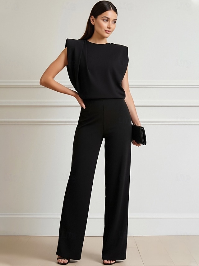 Overalls Bodenlang Brautmutterkleid Ärmellos Rundhalsausschnitt Elegant Einfach Hochzeitsgast Formeller Abend Stretchstoff mit Einfarbig