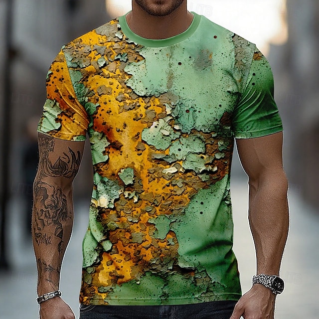 Herren Optische Täuschung 3D T Shirt Kurzarm T-Shirt 3D-Druck Rundhalsausschnitt Hemd Übertrieben Designer Party Straße Lässig Gelb Braun Grün Sommer Frühling Ganzjahres Bekleidung S M L XL XXL XXXL #18144032