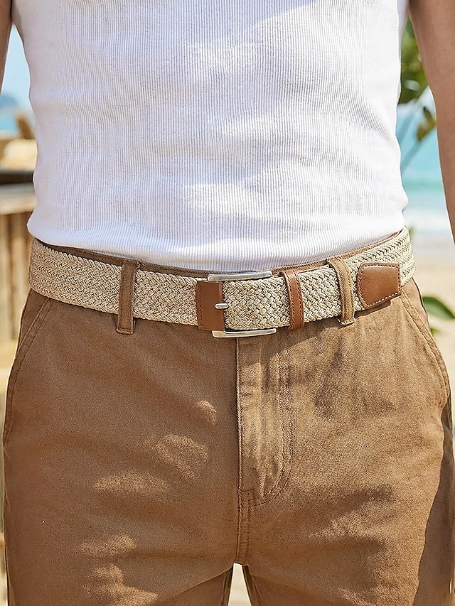 Geflochtener Herren-Stretchgürtel mit Kunstlederbesatz, verstellbarer, gewebter Freizeitgürtel in verschiedenen Farben für den Alltag, Strandurlaub, Reisen und Resort-Looks #18260552