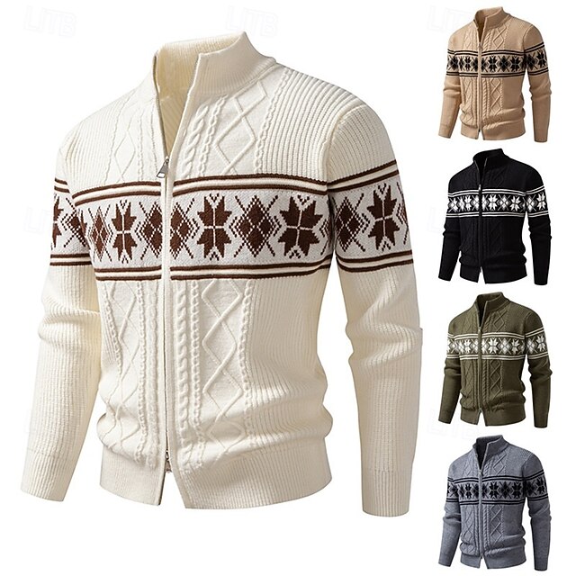 Herren Pullover Strickjacke Fair Isle Sweater Gerippt Stricken Normale Oberteile Gestrickt Einfach Stehkragen Urlaub Mode Lässig Alltagskleidung Bekleidung Winter Frühling & Herbst Schwarz Weiß M L XL #18466865