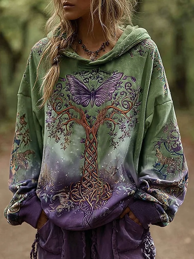 Damen 3D-Druck Vintage Boho Hoodie Patchwork Hoodie Sweatshirt Floral Pullover Sweatshirt Schmetterling Lässig Langarm Kapuzenpullover Party Abendgarderobe Street Alltagsbekleidung Grün Frühling #19625157