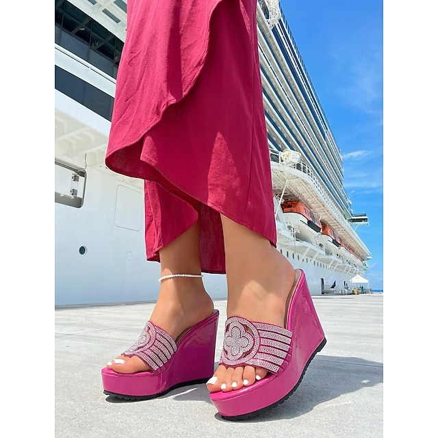 Rosa Keilsandalen für Damen mit Strassverzierungen – stilvolles Schuhwerk für Insel- und Kreuzfahrturlaube #19722165