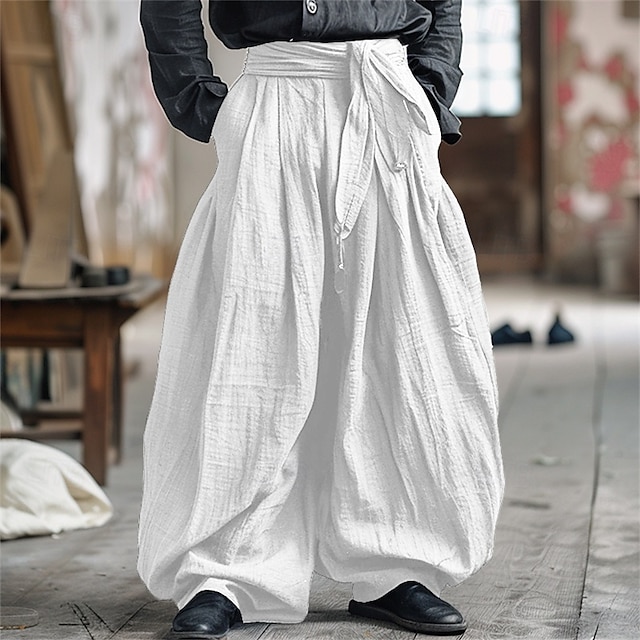 Herren Leinenhosen Hose Sommerhose Baggy-Hosen Strandhose Elastischer Bund Einfach Komfort Atmungsaktiv Urlaub Täglich Ferien Vintage Boho Weiß Marineblau #19775167