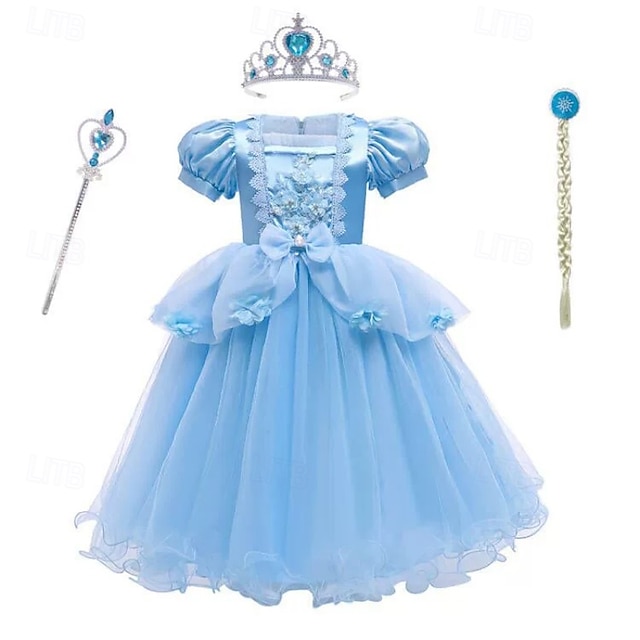 Buchwoche 2026, Mädchenkleid, Cosplay-Kleid, Prinzessinnenkleid, einfarbig, kurzärmelig, Kostüm für Aufführungen und Partys, Patchwork-Kleid, bezauberndes Spitzenkleid, Midikleid, Tüllkleid, Sommerkleid, Frühling #19873897