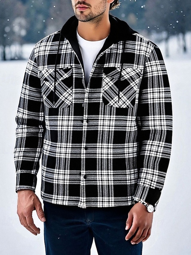 Herren Wintermantel Hemdjacke Fleecejacke Freizeitjacke Lässig Täglich Thermowarm Tasche Herbst Winter Karomuster Streetwear Täglich Mit Kapuze Regulär Blau Schwarz Weiß Rote Dunkelgrün Jacken #19973615