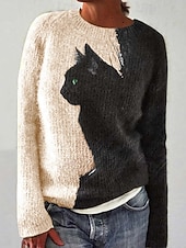 Damen Pullover Täglich Grafisch Tiermotiv Gerippt Rundhalsausschnitt Druck Fallenes Schulterdesign Langarm Normale Oberteile Stricken Formell Wochenende Grün Herbst Winter #13718253