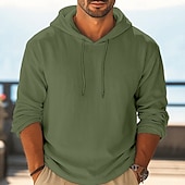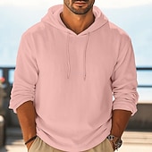 Herren Kapuzensweatshirt Leinen-T-Shirt Langarm Mit Kapuze Sommer Frühling Einfarbig Einfach Vintage Böhmische Lässig Rohkante Urlaub Straße Lässig Weiß Rosa Burgunderrot Top T-Shirt für Herren
