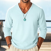 Herren Henley Hemd T-Shirt Henley Oberteil Leinen-T-Shirt Langarm Einfarbig Einfach Einheitliche Farbe Mode Designer Lässig Farbblock Knöpfe Henley Outdoor Lässig Täglich Sommer Frühling Ganzjahres #10643061