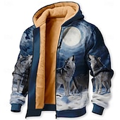 Herren MOON Wolf Pullover 3D Vintage-Retro Stehkragen Outdoor Arbeit Geschenk Blau 1 Blau 3# Blau 2# Blau Reißverschluss Herbst Winter Designer S M L XL XXL XXXL #19378119