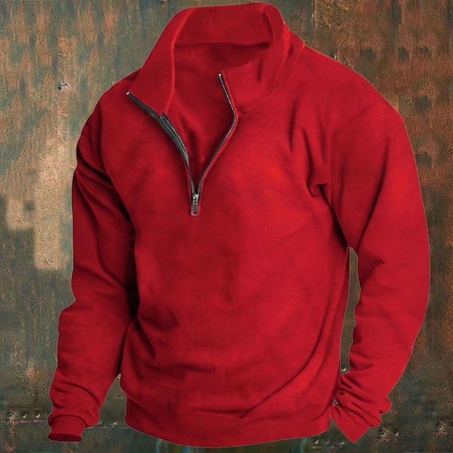 [Stoff]: Hergestellt aus hochwertigem Polyester, sorgt dieses Sweatshirt für Herren sowohl für Wärme als auch für Langlebigkeit mit seinem weichen und atmungsaktiven Material, perfekt für die kühlen Herbst- und Wintermonate. Die Mikrodehnbarkeit bietet eine bequeme und anpassungsfähige Passform. [Passform]: Dieses Sweatshirt ist mit einer regulären Passform gestaltet, die einen lässigen Stil bietet, ideal zum Layering über andere Kleidungsstücke. Die gerippten Bündchen und der Saum verbessern die Passform und sorgen für Wärme und ein insgesamt schlankes Erscheinungsbild. [Design-Highlights]: Mit einem praktischen Halblezip-Verschluss und einem hohen Kragen ausgestattet, ermöglicht dieses Sweatshirt eine verstellbare Belüftung und ein einfaches Anziehen. Das schlichte Muster bietet einen sauberen, vielseitigen Look, der für verschiedene lässige Anlässe geeignet ist. [Anlässe]: Dieses Sweatshirt ist perfekt für legere Ausflüge, Sport und Outdoor-Aktivitäten sowie für gemütliche Tage zu Hause. Sein grundlegendes, aber stylisches Design macht es geeignet für den täglichen Gebrauch, Urlaubsaktivitäten und Streetwear-Mode. [Größenauswahl]: Verfügbar in einer breiten Palette von Größen von S bis 3XL, passt dieses Sweatshirt zu verschiedenen Körpertypen und sorgt für eine bequeme und schmeichelhafte Passform für alle. Mit verschiedenen Farboptionen wie Weiß, Schwarz, Rot, Dunkelgrau, Camel, Wein, Aprikose und Hellgrau spricht es unterschiedliche Stilvorlieben an.