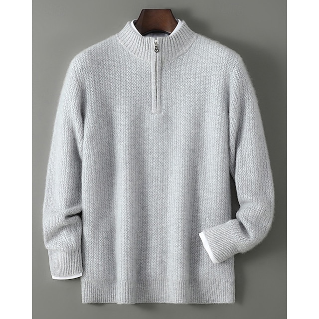 Hochwertiger Herrenpullover aus reiner Wolle und Kaschmir mit Viertelreißverschluss, klassischer Strickpullover, weich, warm und atmungsaktiv.#14895919