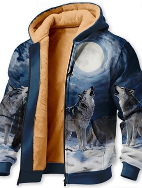 Herren MOON Wolf Pullover 3D Vintage-Retro Stehkragen Outdoor Arbeit Geschenk Blau 1 Blau 3# Blau 2# Blau Reißverschluss Herbst Winter Designer S M L XL XXL XXXL