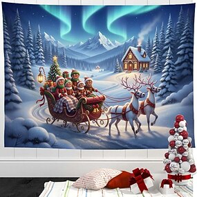 Weihnachtliche Garagentorabdeckung mit Nordlichtern – festliche Weihnachtsdekoration, Winter-Weihnachtsmann-Garagentorvorhang mit Aurora Borealis für den Außenbereich