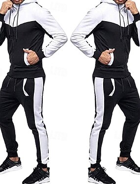 Herren 2-teiliger Trainingsanzug Lounge-Hoodie Trainingsanzug-Sets Farbblock Kombination Frühling Herbst Dunkelgrau Schwarz Fitnessstudio Training Laufen Hohe Taille Leicht Mode Langarm Sport