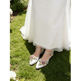 Flache weiße Brautschuhe mit Blumenmuster und Knöchelriemen für Damen – elegante Brautschuhe für Hochzeiten und Gartenzeremonien