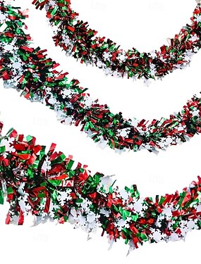 3-teiliges Set weihnachtlicher Metallgirlanden – insgesamt 6 Meter, grün-rote, gedrehte Drahtgirlande mit Schneeflocken, perfekt für Kaminsims, Weihnachtsbaum, Treppengeländer sowie als