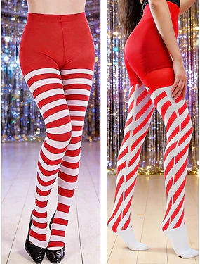 Damen Mardi Gras rot-weiße gestreifte Over-the-Knee-Strumpfhosen dehnbare Karnevalsstutzen-Socken im 2er-Set kühner Festivalstil für Karnevalspartys Cosplay und thematische Veranstaltungen