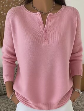 Damen Waffel Tunika Knöpfe Einfach Vintage Stylisch Klassisch Kurzarm Rundhals Lange Tops Täglich Blau Rosa Orange Hellblau Sommer Frühling
