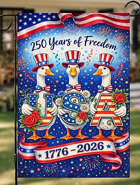 250 Jahre Freiheit in den USA: Gartenflaggen, festliche Hüte und Fliegen im USA-Design, ein farbenprächtiges Feuerwerk – die ideale patriotische Dekoration.