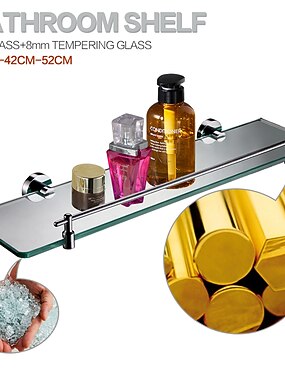 Badezimmerregal, längenverstellbar, bezaubernd, schön, zeitgenössisch, modern, Messing, gehärtetes Glas, Metall, 1 Stück – Badezimmer-Wandmontage