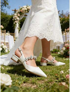 Elegante Brautschuhe für Garten- und Standesamthochzeiten, weiße Brautschuhe mit spitzer Zehenpartie und Kristallriemen