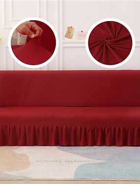 1-teiliger Schlafsofabezug aus Milchseide in Volltonfarbe, elastischer, faltbarer Schonbezug ohne Armlehnen, Spitzenbesatz, haustierfreundlich, Ganzjahresschutz
