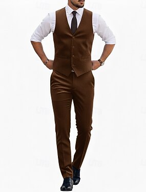Herren Smokings Business-Anzüge Lässig Party Braun Herbst Anzug Gekerbtes Revers Formell Einfarbig Schmale Passform 3-teilig Einreihige Zwei-Knopf-Jacke