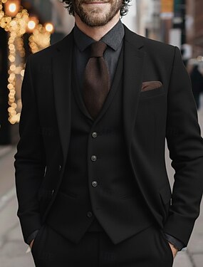 Herren Business-Anzüge Lässig Hochzeit Schwarz Braun Herbst Anzug Steigendes Revers Geschäftlich Kleid Einfarbig Standard Passform 3-teilig Einreiher - 1 Knopf