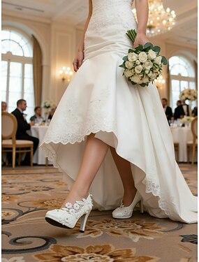 weiße Hochzeits-Pumps für Damen – florale Spitzenverzierungen mit Perlen- und Strass-Akzenten, perfekt für Bräute und besondere Anlässe