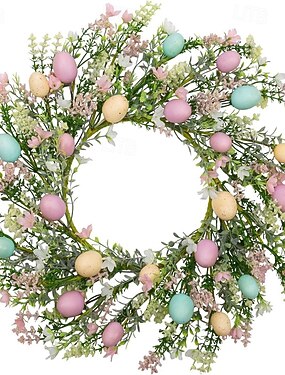 Osterkranz für die Haustür mit pastellfarbenen, gesprenkelten Eiern und rosa Blüten, künstlicher Frühlingskranz (45 cm Durchmesser) für Wand und Fenster, Landhausstil, florale Dekoration für drinnen und draußen