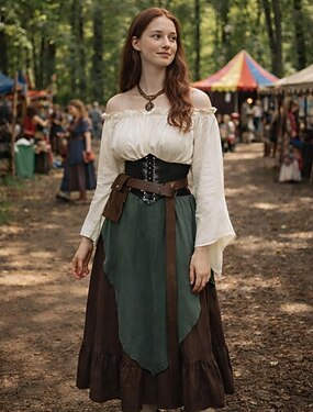 Set Retro Vintage Mittelalterlich Renaissance Maxi Rock Bluse / Hemd Outfits mit Zubehör langarm Pirat Kostüm Damen 5 Stücke Halloween Karneval Renaissance-Messe Erwachsene Bluse Rock Korsett