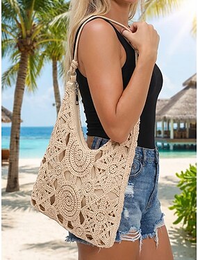 Damen Handtasche Schultertaschen Stroh Lässig Strand Reise Reißverschluss Leicht Einfarbig Geflochten
