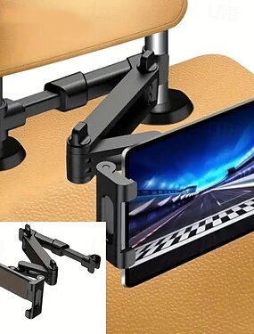 3-in-1-Tablet-Halterung für die Kopfstütze des Autos mit 360-Grad-Drehung und verstellbarem Verlängerungsarm – faltbares Design, sichere Klemmhalterung, kompatibel mit 4 7-11 iPad Pro/Air/Mini. Ein